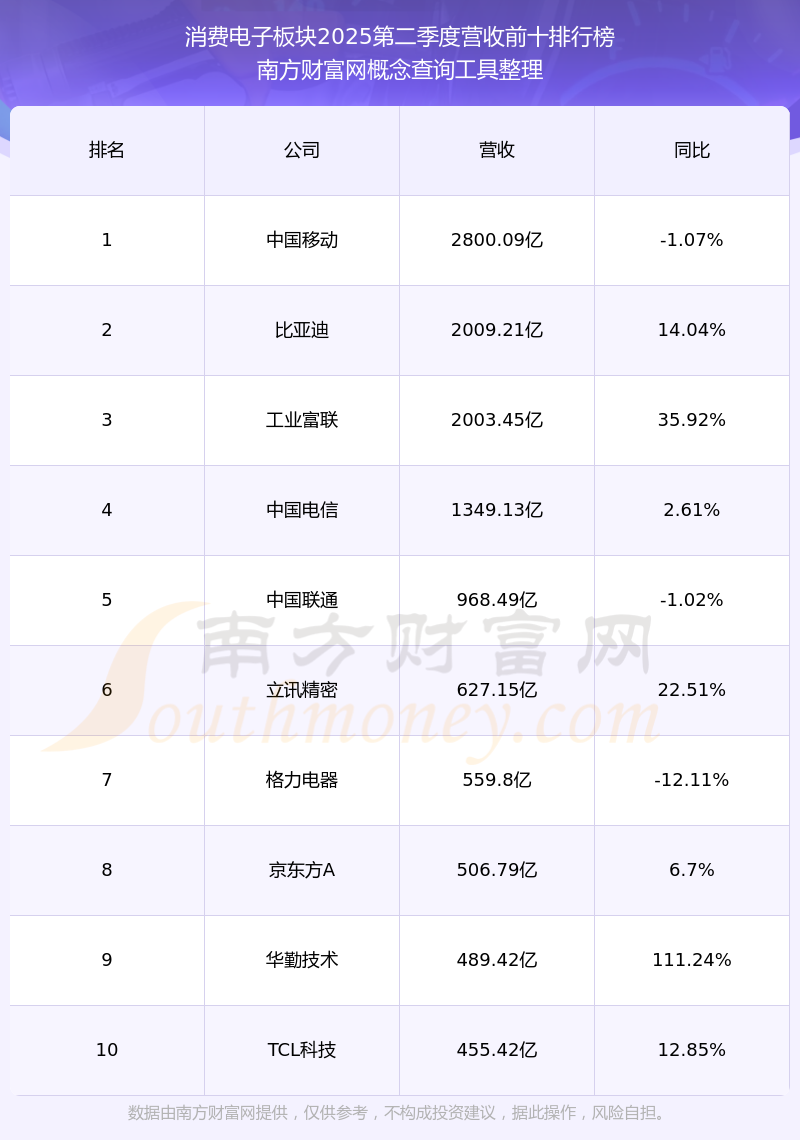 按照南方財富網(wǎng)概念查詢工具統(tǒng)計,該股所屬板塊為消費電子板塊,該板塊共有437只股票,松井股份2025第二季度營收在該板塊中排名為第364名,該板塊2025第二季度營收排名前十的股票如下表: