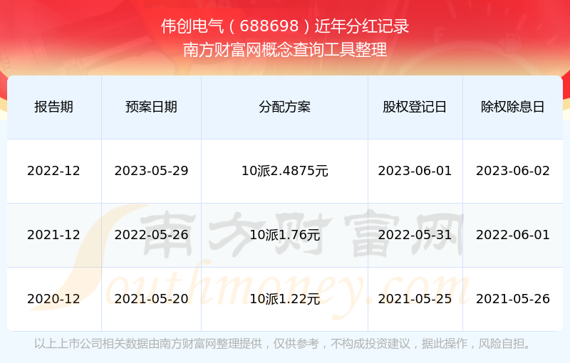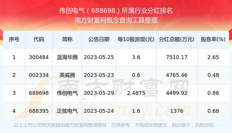 二、偉創(chuàng)電氣688698行業(yè)分紅排名