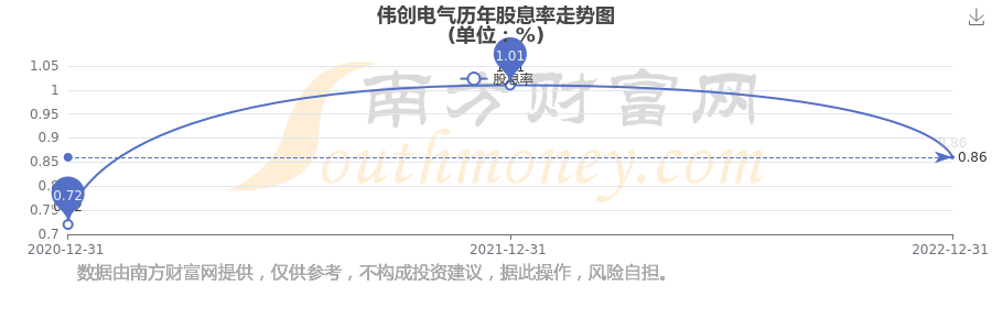 近年偉創(chuàng)電氣年度股息率走勢(shì)如下圖: