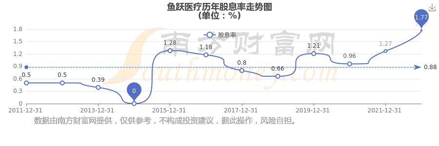 近年魚躍醫(yī)療年度股息率走勢(shì)如下圖: