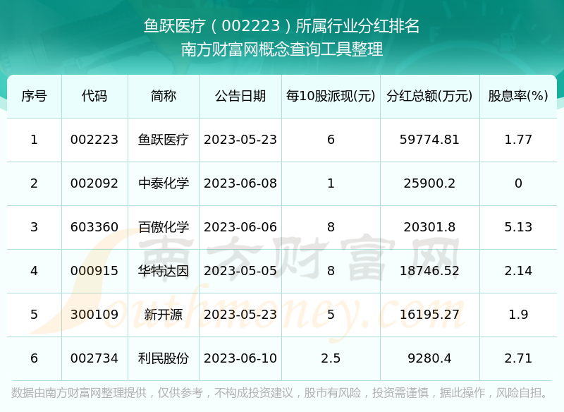 二、魚躍醫(yī)療002223行業(yè)分紅排名
