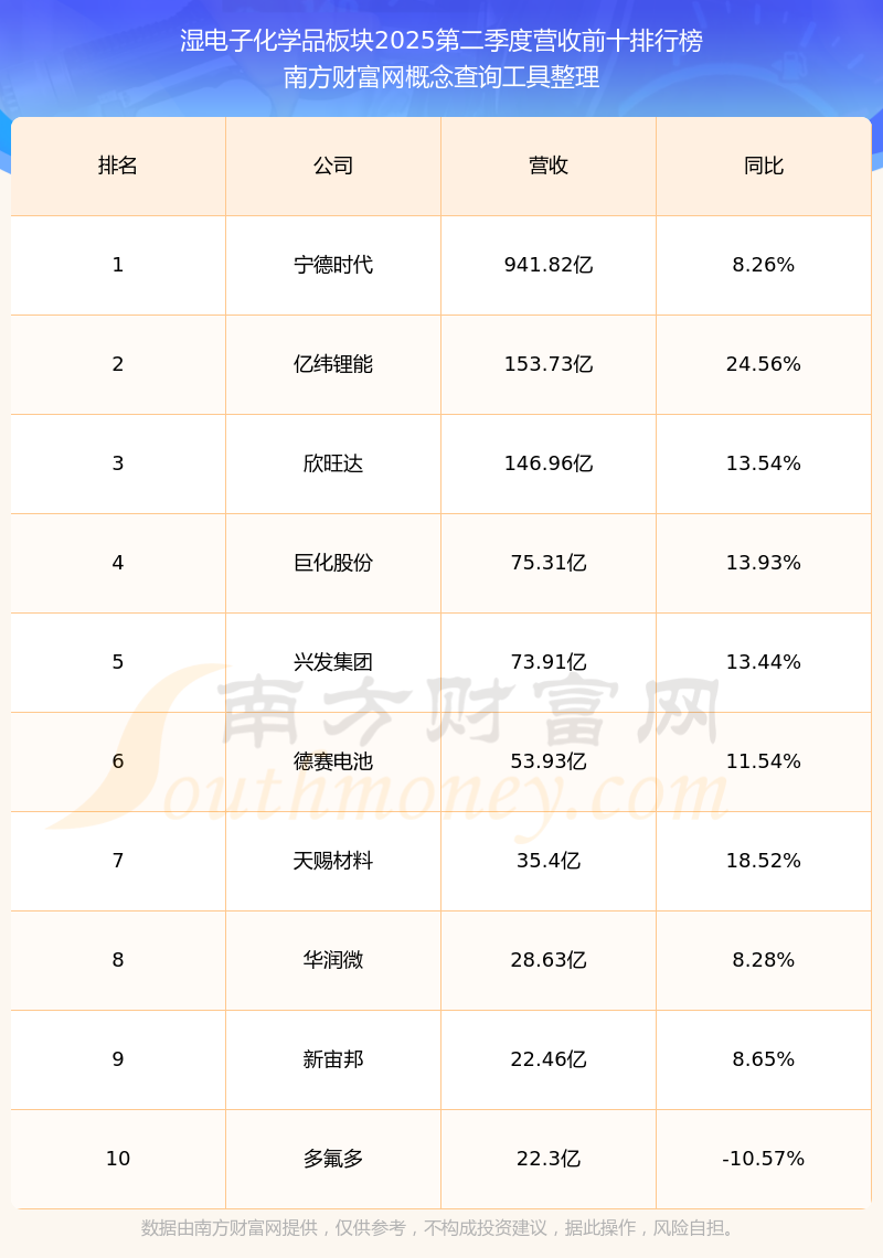 按照南方財富網概念查詢工具統(tǒng)計,該股所屬板塊為濕電子化學品板塊,該板塊共有36只股票,格林達2025第二季度營收在該板塊中排名為第35名,該板塊2025第二季度營收排名前十的股票如下表: