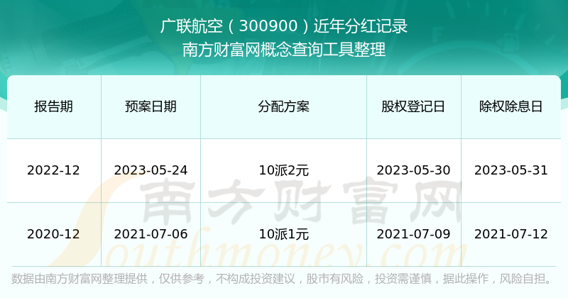 一、廣聯(lián)航空(300900)股票分紅記錄