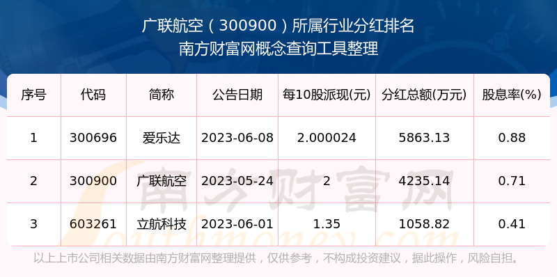 二、廣聯(lián)航空300900行業(yè)分紅排名