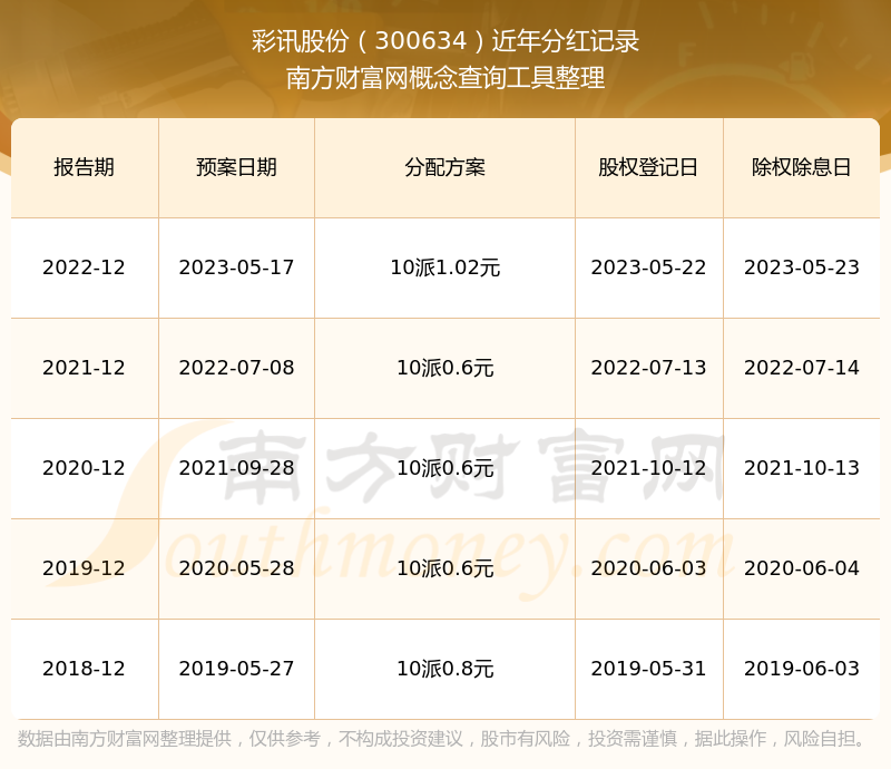 一、彩訊股份(300634)股票分紅記錄