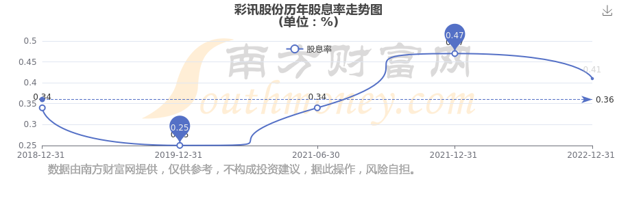 近年彩訊股份年度股息率走勢(shì)如下圖: