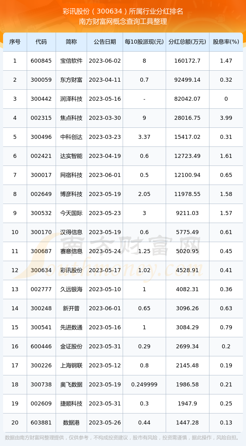 二、彩訊股份300634行業(yè)分紅排名