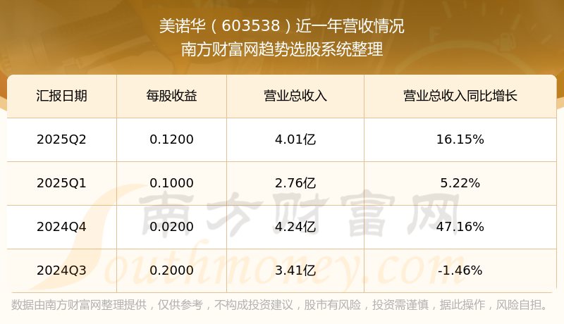 美諾華發(fā)布2025年第二季度財報。實現(xiàn)總營收4.01億元,同比增長16.15%;扣非凈利潤同比增長2410.93%至2013.02萬元。
