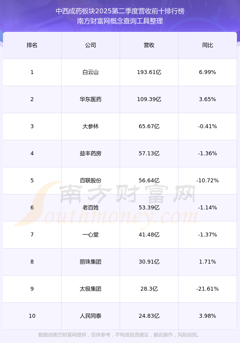 按照南方財富網(wǎng)概念查詢工具統(tǒng)計,該股所屬板塊為中西成藥板塊,該板塊共有13只股票,健之佳2025第二季度營收在該板塊中排名為第13名,該板塊2025第二季度營收排名前十的股票如下表: