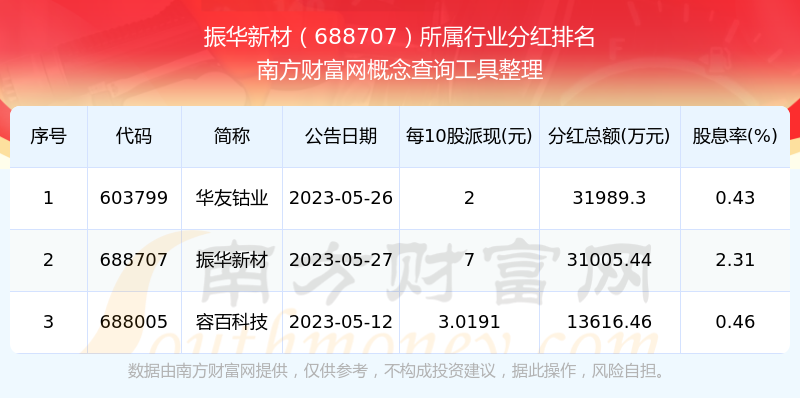 二、振華新材688707行業(yè)分紅排名