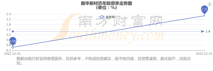 近年振華新材年度股息率走勢如下圖: