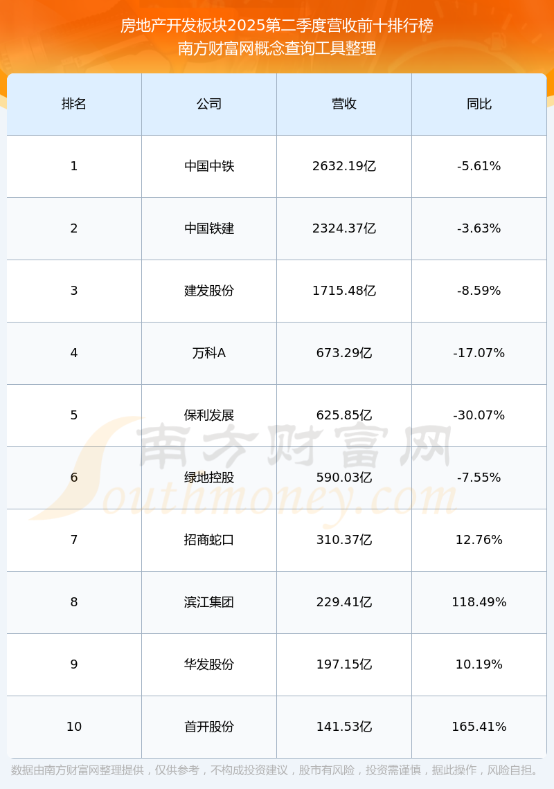 按照南方財富網(wǎng)概念查詢工具統(tǒng)計,該股所屬板塊為房地產(chǎn)開發(fā)板塊,該板塊共有143只股票,鳳凰股份2025第二季度營收在該板塊中排名為第117名,該板塊2025第二季度營收排名前十的股票如下表: