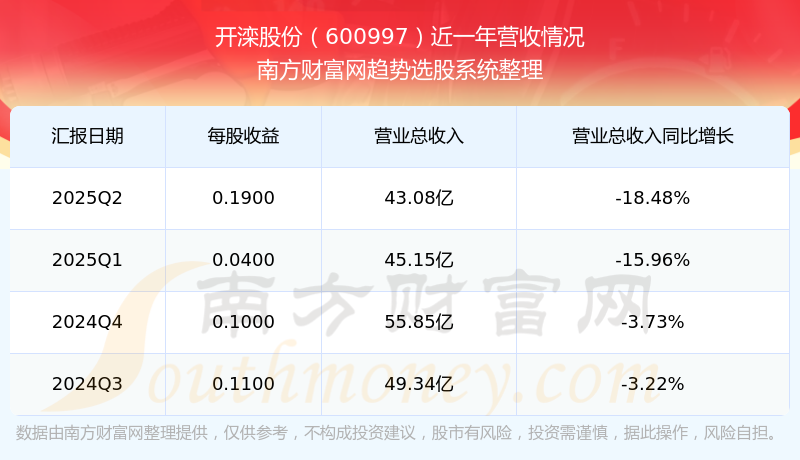 開灤股份2025年第二季度公司實現(xiàn)營業(yè)收入43.08億元,同比-18.48%;歸母凈利潤2.93億元,同比7.7%。