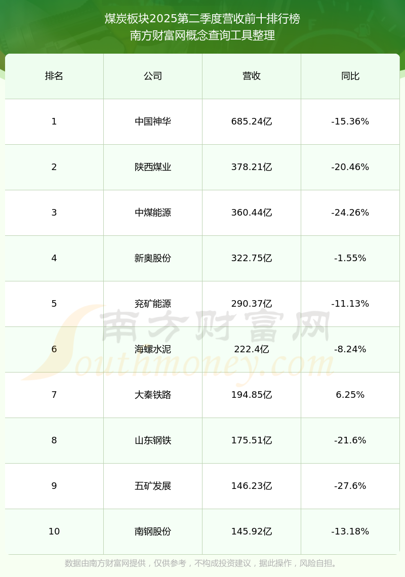 按照南方財富網(wǎng)概念查詢工具統(tǒng)計,該股所屬板塊為煤炭板塊,該板塊共有71只股票,開灤股份2025第二季度營收在該板塊中排名為第31名,該板塊2025第二季度營收排名前十的股票如下表: