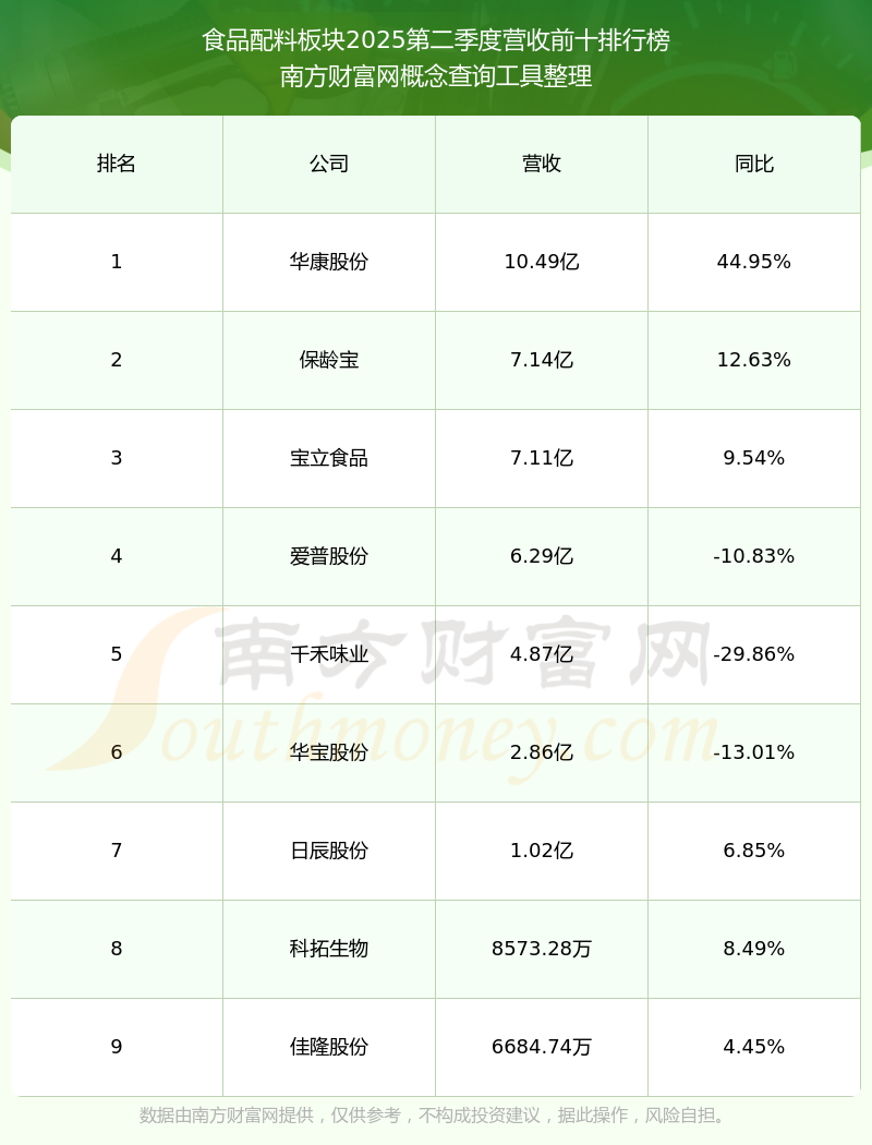按照南方財富網(wǎng)概念查詢工具統(tǒng)計,該股所屬板塊為食品配料板塊,該板塊共有9只股票,愛普股份2025第二季度營收在該板塊中排名為第4名,該板塊2025第二季度營收排名前十的股票如下表:
