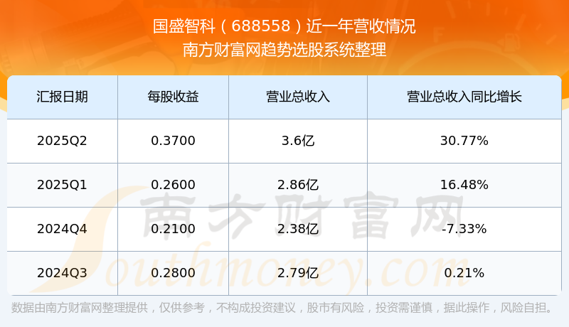 國盛智科發(fā)布2025年第二季度財報。實(shí)現(xiàn)總營收3.6億元,同比增長30.77%;扣非凈利潤同比增長31.1%至4403.28萬元。