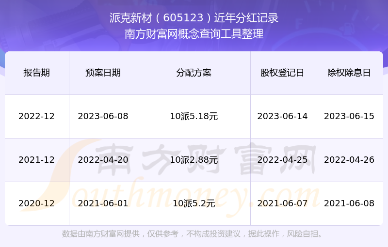 派克新材最新一次公布的分紅方案:10派5.18元。