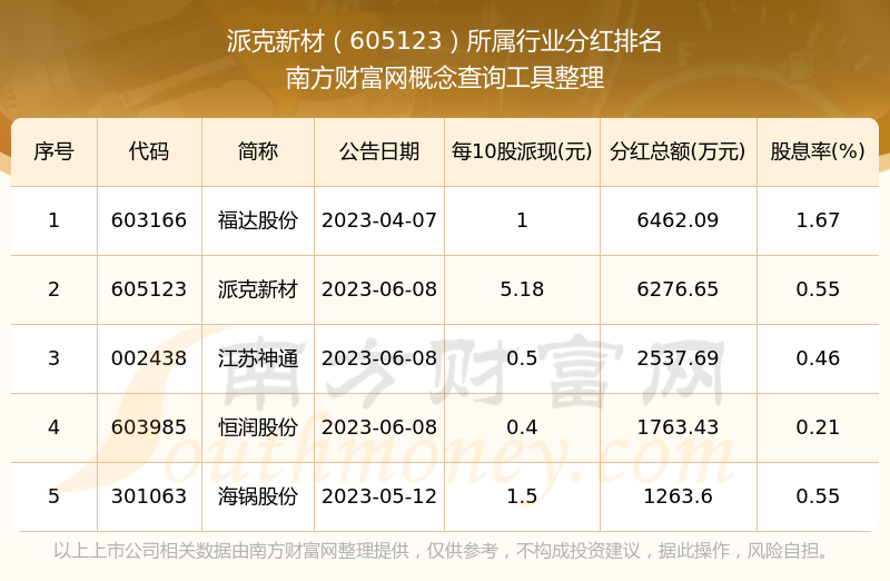 按照南方財(cái)富網(wǎng)趨勢選股系統(tǒng)統(tǒng)計(jì),派克新材所屬行業(yè)為鍛件行業(yè),鍛件行業(yè)分紅排名情況如下表: