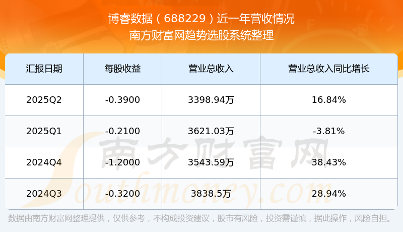 博睿數(shù)據(jù)2025年第二季度財報顯示,公司主營收入3398.94萬元,同比16.84%;歸母凈利潤-1698.66萬元,同比51.72%;扣非凈利潤-1720.4萬元,同比51.63%。
