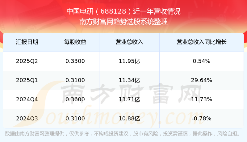 于2025年第二季度,中國電研披露了其業(yè)績表現(xiàn),其中主營業(yè)務(wù)收入11.95億元,相較于去年同期0.54%。此外,公司歸屬于母公司的凈利潤為1.32億元,同比增長了4.22%。在扣除所有非經(jīng)常性損益后,凈利潤1.24億元,同比增長0.51%。
