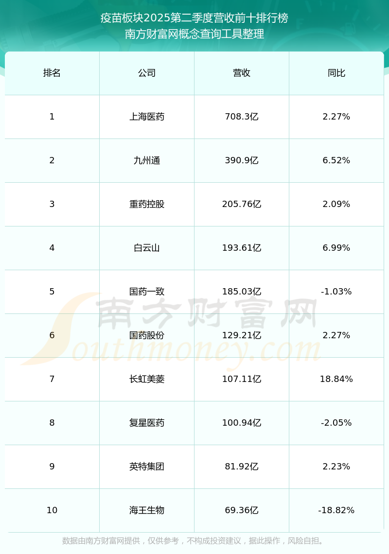 按照南方財富網(wǎng)概念查詢工具統(tǒng)計,該股所屬板塊為疫苗板塊,該板塊共有102只股票,康希諾2025第二季度營收在該板塊中排名為第76名,該板塊2025第二季度營收排名前十的股票如下表: