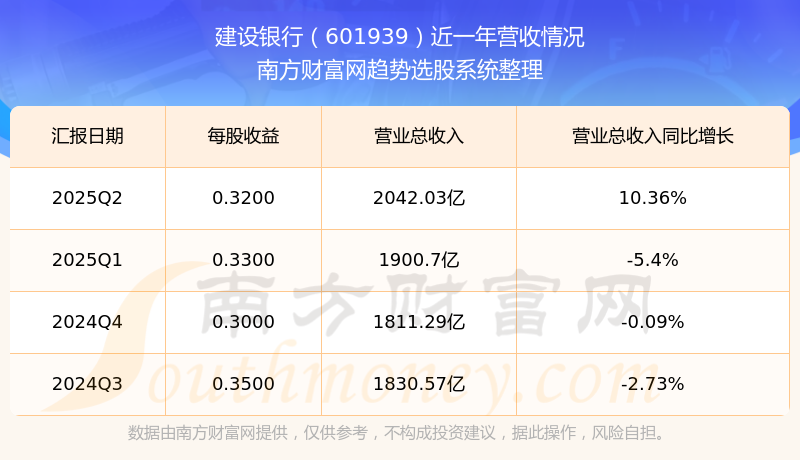 建設(shè)銀行2025年第二季度顯示,公司主營收入2042.03億元,同比10.36%;歸母凈利潤787.25億元,同比1.57%;扣非凈利潤783.25億元,同比1.14%;