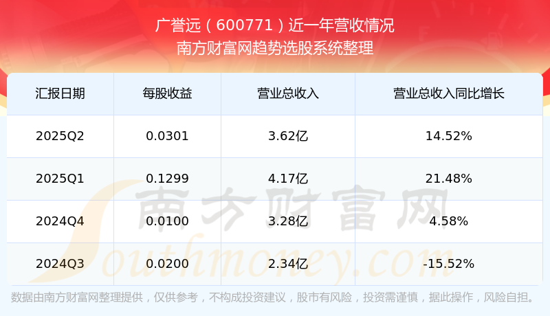 一、廣譽(yù)遠(yuǎn)(600771)股票營(yíng)收情況