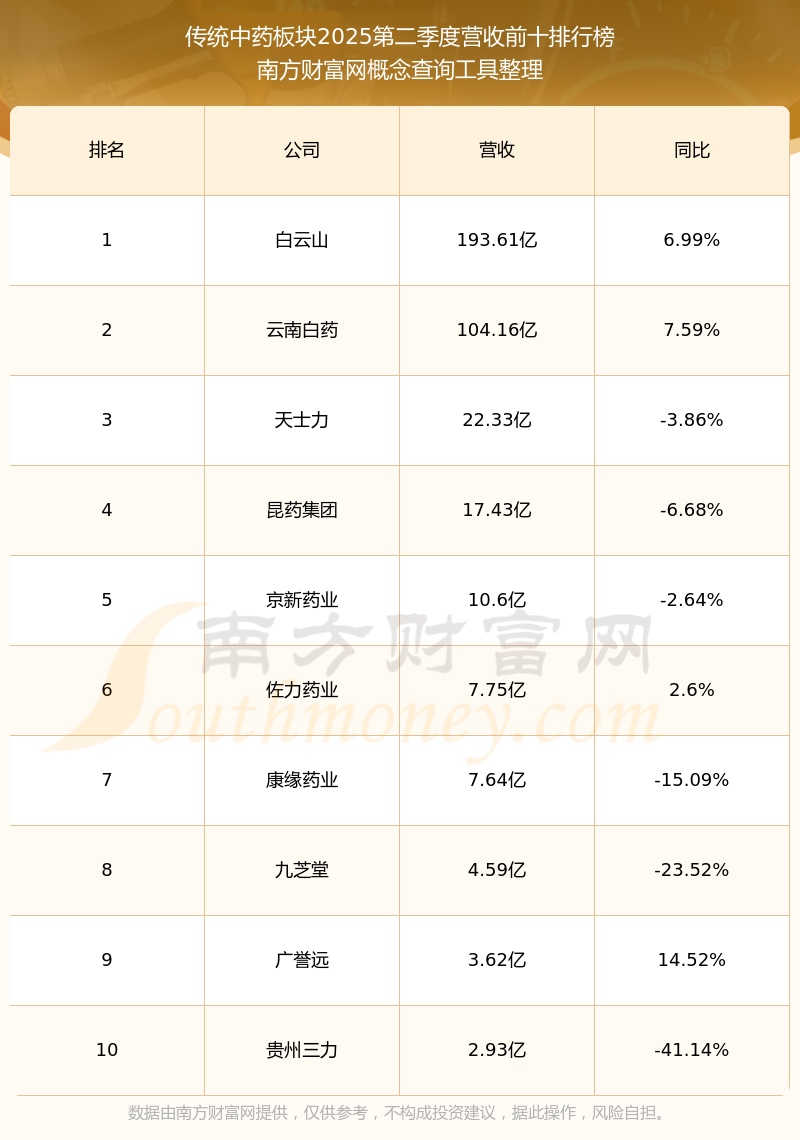 按照南方財(cái)富網(wǎng)概念查詢工具統(tǒng)計(jì),該股所屬板塊為傳統(tǒng)中藥板塊,該板塊共有11只股票,廣譽(yù)遠(yuǎn)2025第二季度營(yíng)收在該板塊中排名為第9名,該板塊2025第二季度營(yíng)收排名前十的股票如下表: