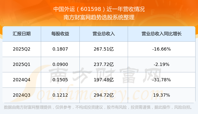 中國外運(yùn)發(fā)布2025年第二季度財(cái)報(bào)。實(shí)現(xiàn)總營收267.51億元,同比增長-16.66%;扣非凈利潤同比增長-22.51%至8.27億元。