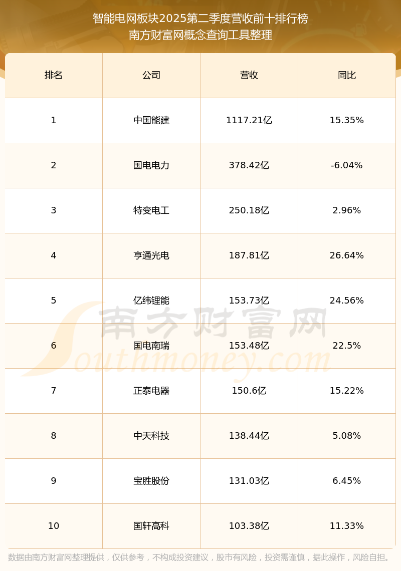 按照南方財富網(wǎng)概念查詢工具統(tǒng)計,該股所屬板塊為智能電網(wǎng)板塊,該板塊共有279只股票,四方股份2025第二季度營收在該板塊中排名為第42名,該板塊2025第二季度營收排名前十的股票如下表:
