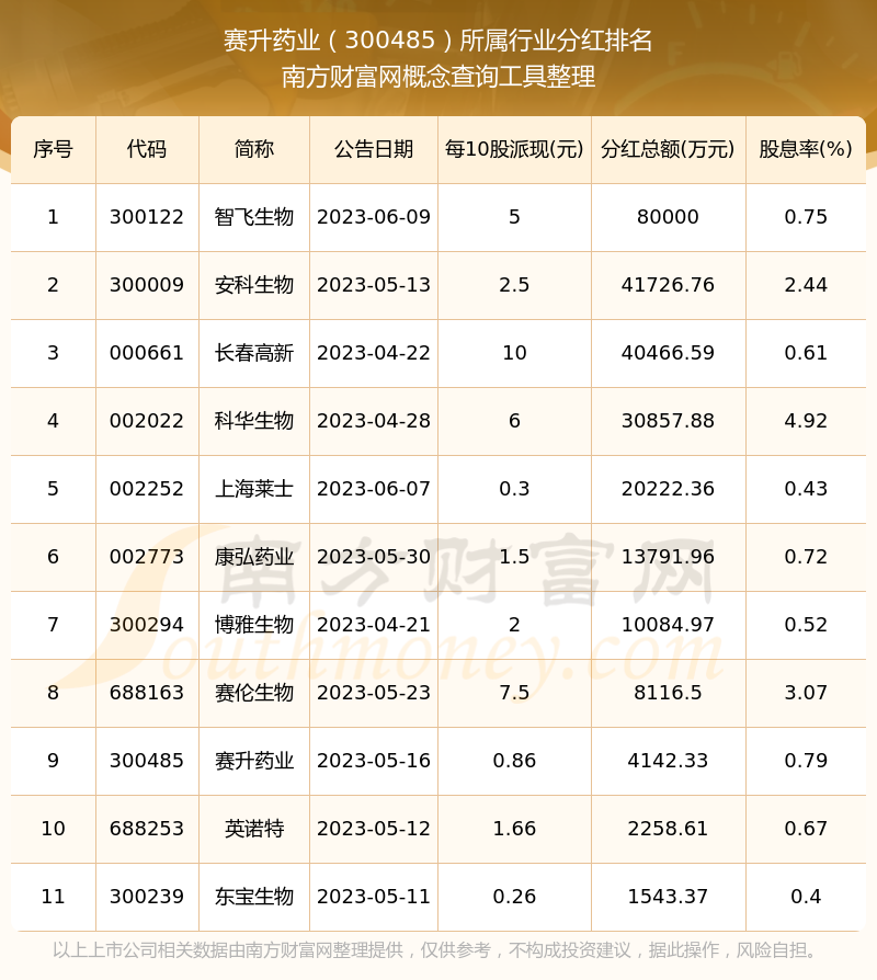 二、賽升藥業(yè)300485行業(yè)分紅排名