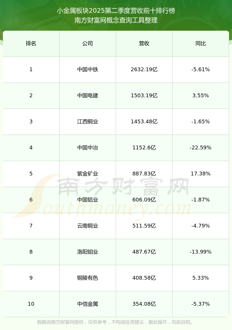 按照南方財富網(wǎng)概念查詢工具統(tǒng)計,該股所屬板塊為小金屬板塊,該板塊共有173只股票,有研新材2025第二季度營收在該板塊中排名為第67名,該板塊2025第二季度營收排名前十的股票如下表: