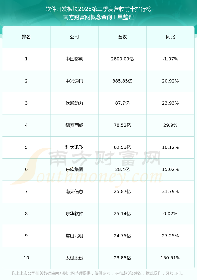 按照南方財富網(wǎng)概念查詢工具統(tǒng)計,該股所屬板塊為軟件開發(fā)板塊,該板塊共有196只股票,健麾信息2025第二季度營收在該板塊中排名為第196名,該板塊2025第二季度營收排名前十的股票如下表: