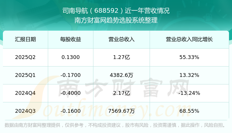 按照南方財富網(wǎng)概念查詢工具統(tǒng)計,該股所屬板塊為衛(wèi)星導(dǎo)航板塊,該板塊共有220只股票,司南導(dǎo)航2025第二季度營收在該板塊中排名為第171名,該板塊2025第二季度營收排名前十的股票如下表: