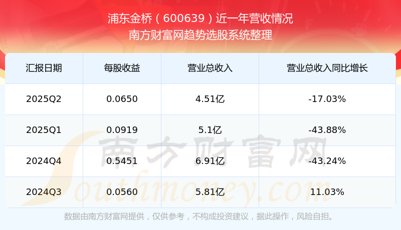浦東金橋披露了2025年第二季度財(cái)報(bào)。報(bào)告顯示,浦東金橋2025年第二季度實(shí)現(xiàn)營(yíng)收4.51億元,同比-17.03%;歸母凈利潤(rùn)7234.43萬(wàn)元,同比-27.37%。