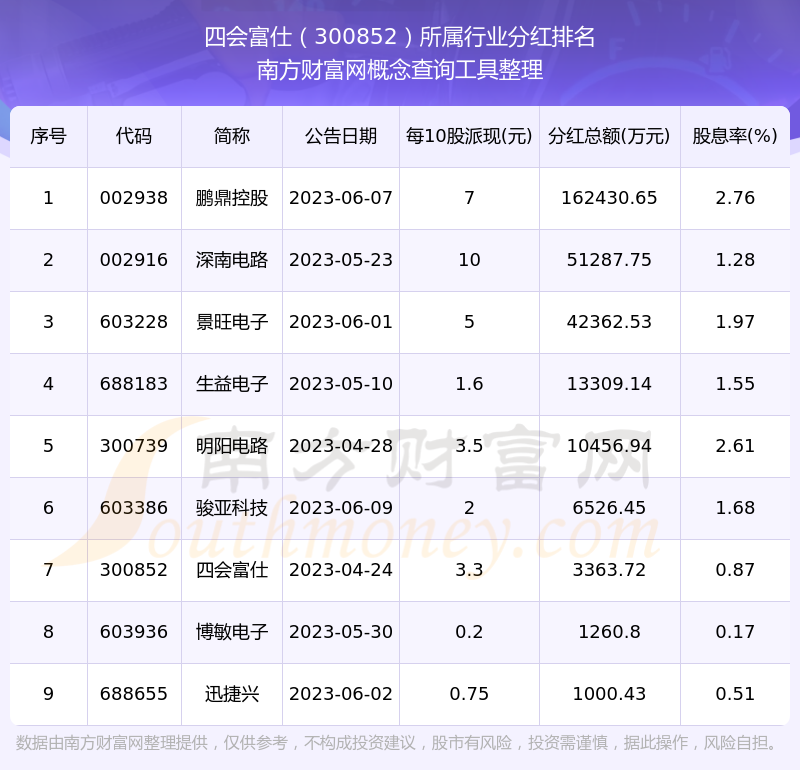 二、四會(huì)富仕300852行業(yè)分紅排名
