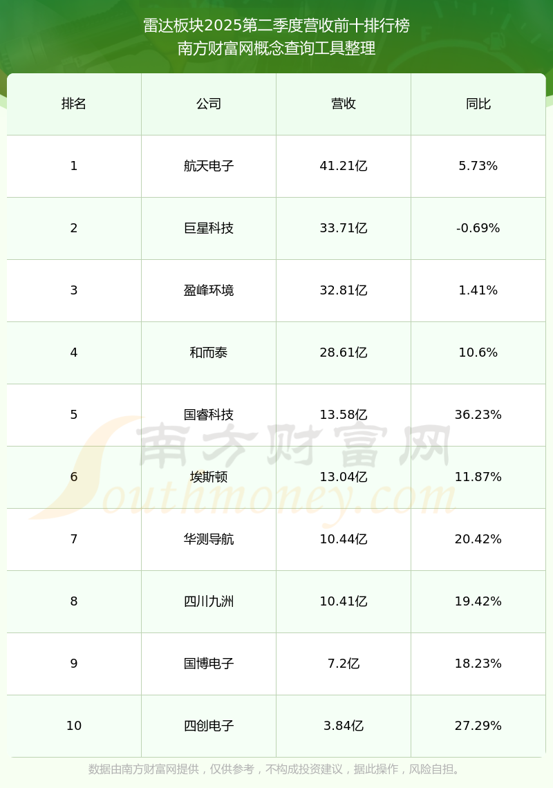 按照南方財富網(wǎng)概念查詢工具統(tǒng)計,該股所屬板塊為雷達板塊,該板塊共有29只股票,納睿雷達2025第二季度營收在該板塊中排名為第23名,該板塊2025第二季度營收排名前十的股票如下表: