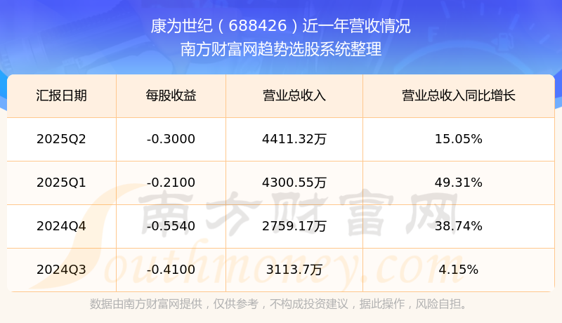 2025年第二季度,康為世紀(jì)營收同比15.05%,凈利潤同比-57.27%。