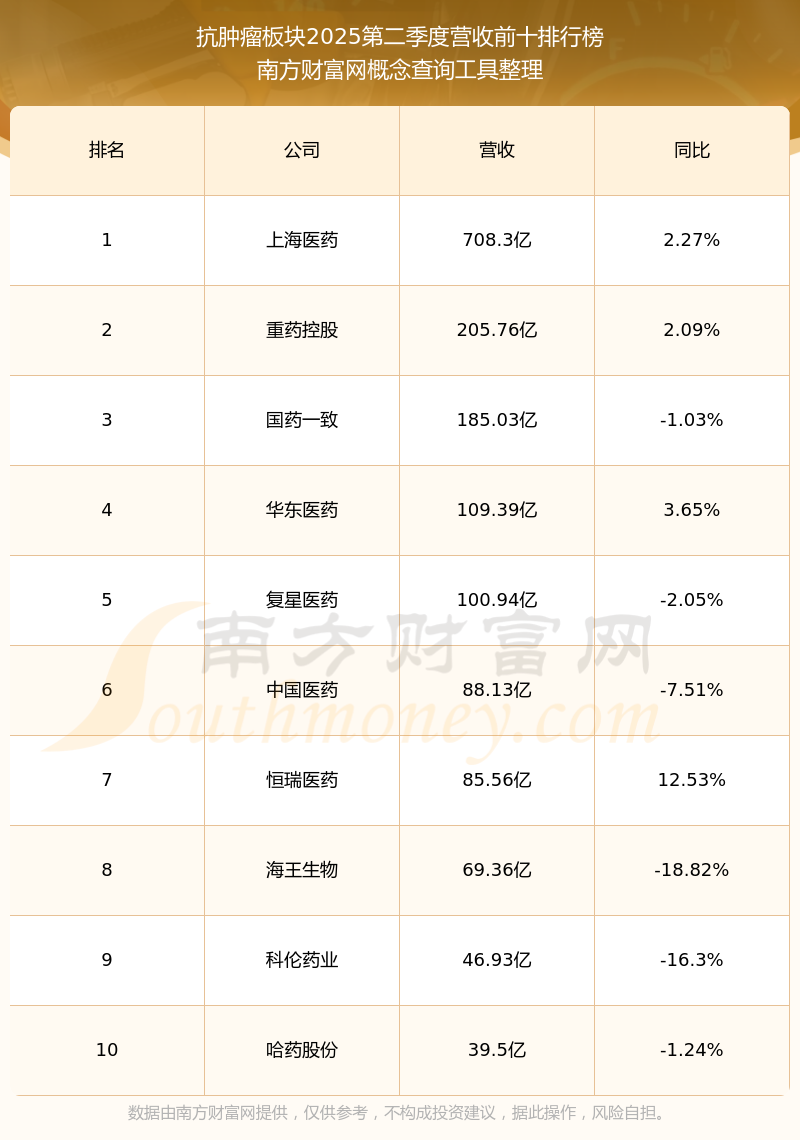 按照南方財(cái)富網(wǎng)概念查詢工具統(tǒng)計(jì),該股所屬板塊為抗腫瘤板塊,該板塊共有90只股票,益佰制藥2025第二季度營收在該板塊中排名為第45名,該板塊2025第二季度營收排名前十的股票如下表: