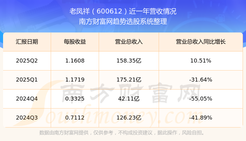 財報顯示,2025年第二季度老鳳祥營收158.35億元,同比增長10.51%,凈利潤6.07億元,同比增長0.88%。