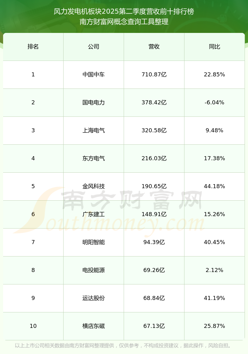 按照南方財富網(wǎng)概念查詢工具統(tǒng)計,該股所屬板塊為風(fēng)力發(fā)電機板塊,該板塊共有45只股票,三一重能2025第二季度營收在該板塊中排名為第11名,該板塊2025第二季度營收排名前十的股票如下表: