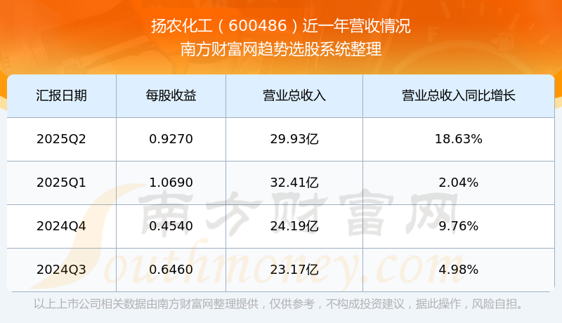 財(cái)報(bào)顯示,2025年第二季度揚(yáng)農(nóng)化工營(yíng)收29.93億元,同比增長(zhǎng)18.63%,凈利潤(rùn)3.71億元,同比增長(zhǎng)11.06%。