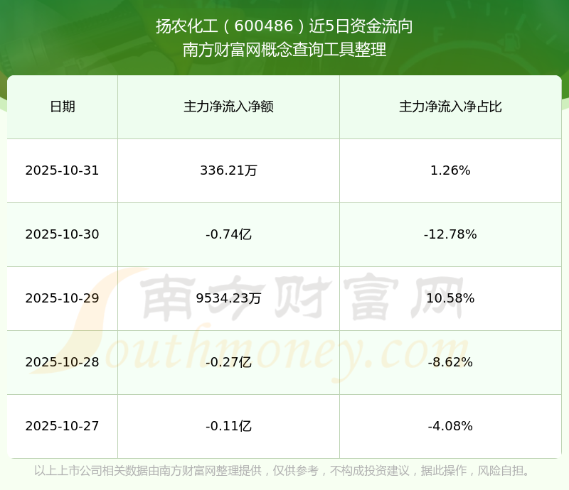 二、揚(yáng)農(nóng)化工(600486)近期盤面、資金面情況