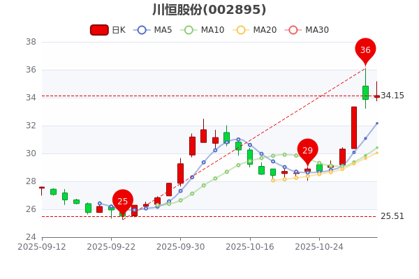 10月31日消息,川恒股份7日內(nèi)股價(jià)上漲15.4%,最新報(bào)34.150元,市盈率為19.35。