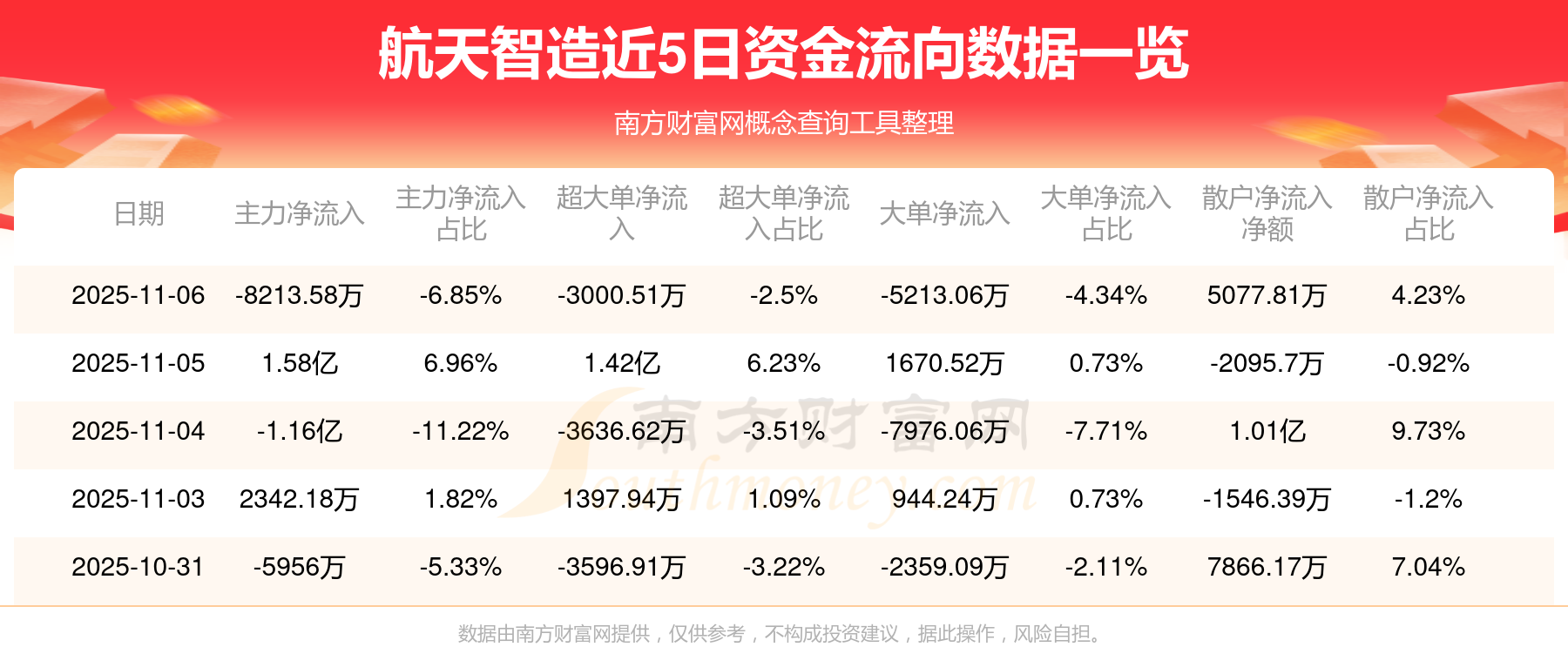 11月6日消息,航天智造主力資金凈流出8213.58萬元,超大單資金凈流出3000.51萬元,散戶資金凈流入5077.81萬元。