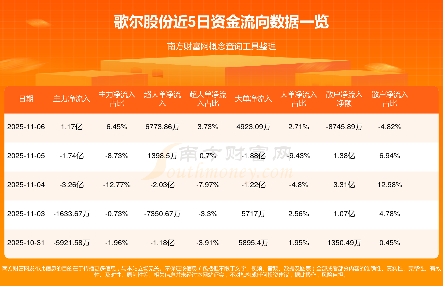 11月6日消息,歌爾股份主力凈流入1.17億元,超大單凈流入6773.86萬元,散戶凈流出8745.89萬元。