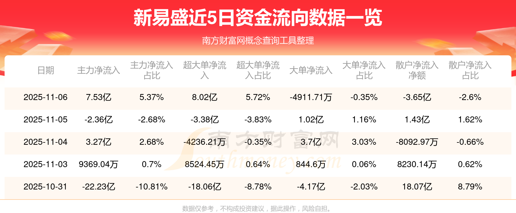 11月6日消息,新易盛11月6日主力資金凈流入7.53億元,超大單資金凈流入8.02億元,大單資金凈流出4911.71萬元,散戶資金凈流出3.65億元。