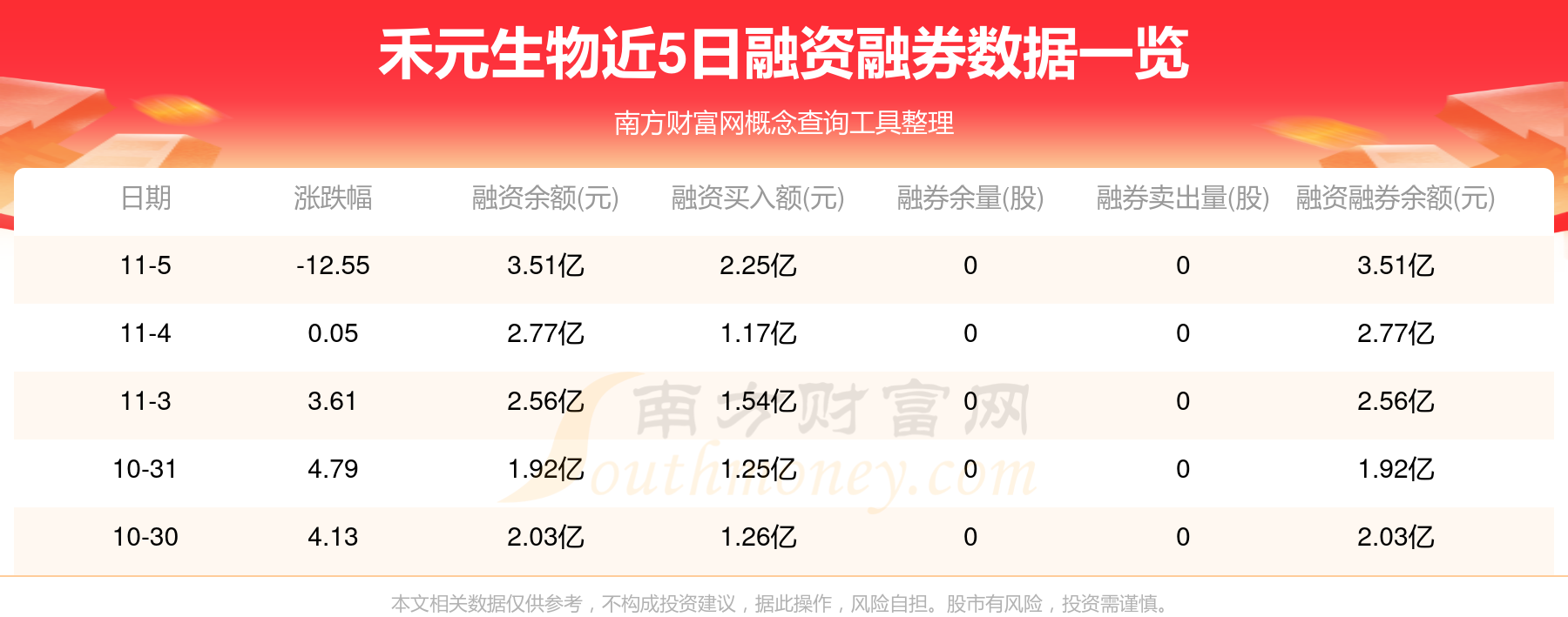 禾元生物11月5日融券信息顯示,融資方面,當日融資買入2.25億元,融資償還1.51億元,融資凈買額7411.38萬元。近5日融資融券數(shù)據(jù)一覽見下表: