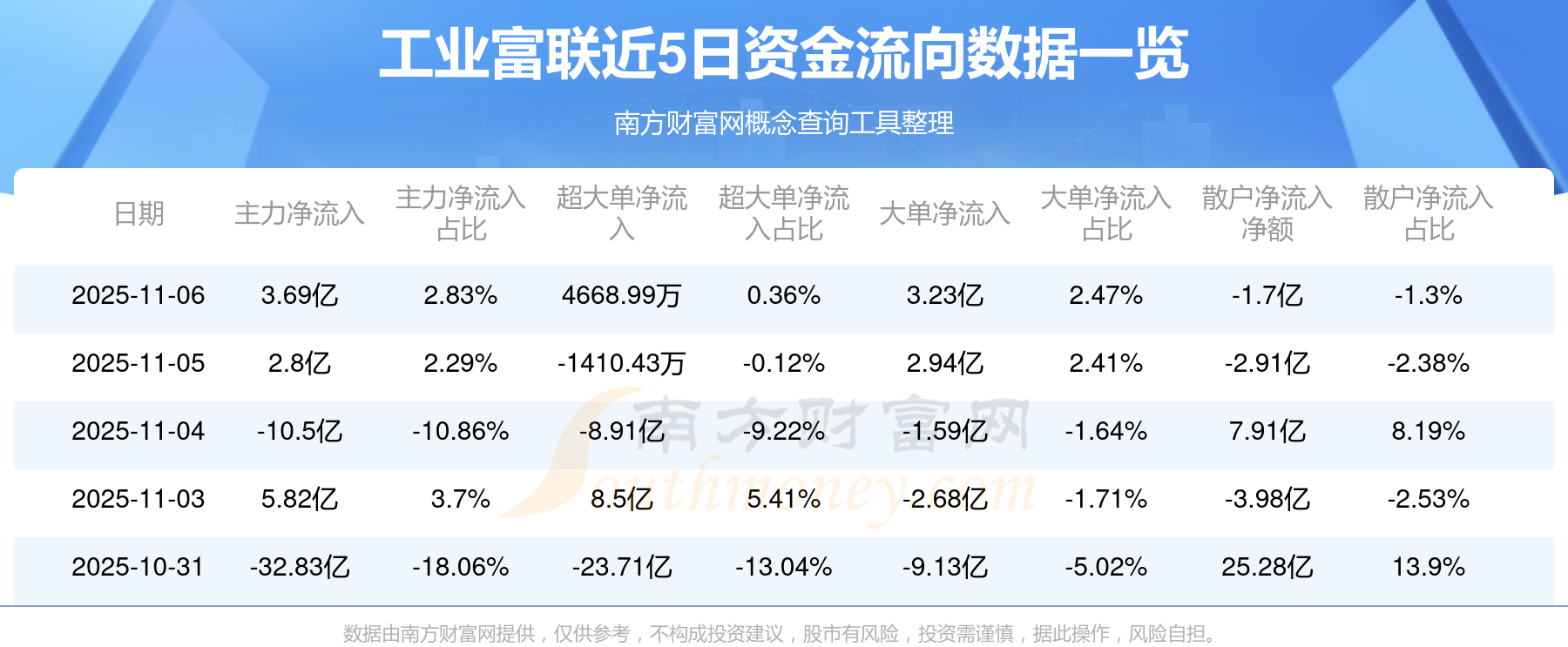 11月6日消息,工業(yè)富聯(lián)主力資金凈流入3.69億元,超大單資金凈流入4668.99萬元,散戶資金凈流出1.7億元。