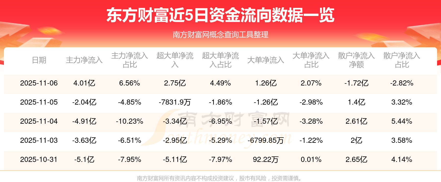 近5日資金流向一覽見下表: